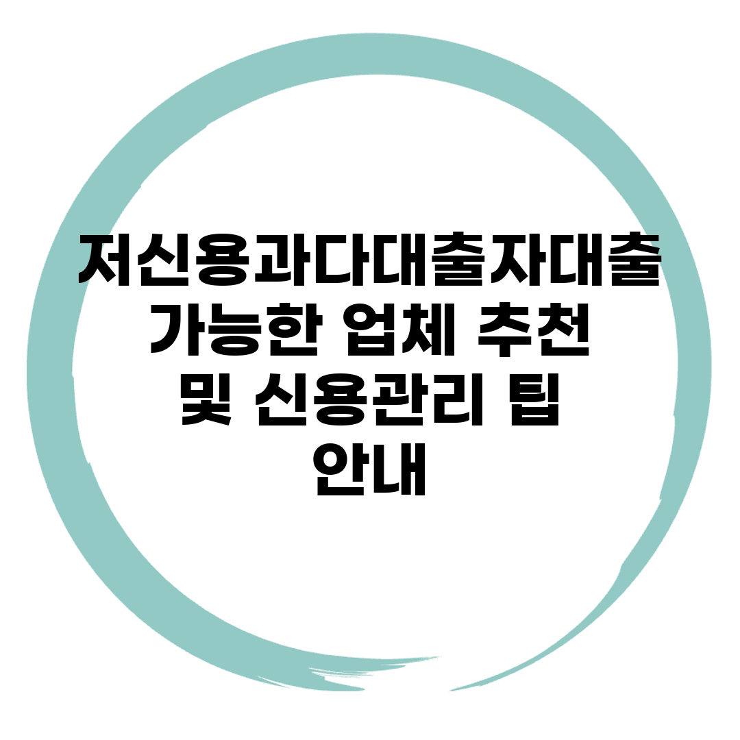 저신용과다대출자대출 가능한 업체 추천 및 신용관리 팁 안내
